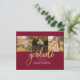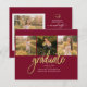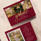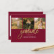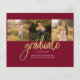 Abschluss 4 Foto Collage Script Burgundy Gold Budget Announcement Karte. Passen Sie diese einfach an, indem Sie den Text ändern und die Fotos durch Ihren ersetzen. Eine moderne und trendiere Art, Ihren Abschluss in diesem Jahr bekannt zu geben!
