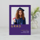 Einfache Grad 2025 Real Gold Foil Lila Ankündigung. Die Eleganz der echten Folie für die Typografie Grad, unter Ihrem Foto, und auch für den Namen Ihres Absolventen mit der Erholung des Textes in Weiß auf einem lila Hintergrund. Personalisieren Sie den Text einfach mit Ihrer Nachricht auf der Rückseite und tauschen Sie das Beispiel-Foto durch Ihr eigenes aus.