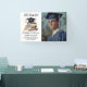 Elegante schwarze Graduiertenkappe und ein Stapel Bücher, die den Namen und das Klassenjahr "He did It!" abschließen. Abschluss bewahrt Sake-Design mit dem Foto des Absolventen.