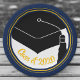 Auf diesen Tellern der Grad Cap Navy und Gold Class Year servieren wir Ihren Gästen Speisen. Personalisieren Sie das Jahr Ihres Abschlusses. Es verfügt über eine überdimensionale Studentenkappe mit stilvollem Script-Schriftart in Gold.