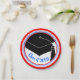 Auf den Tellern Grad Cap Red, White und Blue Class Year können Sie hier speisen. Personalisieren Sie das Jahr Ihres Abschlusses. Es verfügt über eine überdimensionale Abstufung mit stylischem Script-Schriftart in blau.