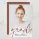 Moderne Abschluss-Ankündigung für Ihre Klasse von 2022 grad verfügt über ein Single vertikal/portrait orientiertes Foto, mit "grad" am unteren Rand in dunklem Terracotta Ton handgeschriebene Skript-Schrift. Der Name und die Schule des Absolventen erscheinen ganz unten. Fügen Sie dem Rücken eine persönliche Ankündigung und ein zusätzliches Foto hinzu.