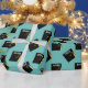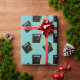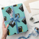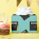 Creative Abschluss Geschenkpackung und grad Party Dekor mit Schwarz-Gold-grad-Kappe auf aquamarin blauem Hintergrund. So personalisieren Sie Text bearbeiten, um seinen Namen und das Klassenjahr hinzuzufügen.
