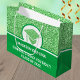 Personalisieren Sie diese große Geschenktasche in einem grün-weißen Farbschema, ein wenig Imitat Glitzer für das elegante Aussehen von Funkeln, ein klassisches Graduierungs-Cap und Tassel-Design und drei Text-Vorlagen, damit Sie die perfekte Geschenktasche kreieren können. Die untere Hälfte dieser Geschenktaschen ist grün mit drei Zeilen fett weißem Text, wo Sie Ihren Absolvent den Namen, Glückwünsche und KLASS OF 20XX (den Abschluss Jahr hinzufügen) oder jeden kurzen Text, den Sie mögen hinzufügen können. Die obere Hälfte dieser großen Geschenktaschen aus personalisiertem Abschluss hat einen Hintergrund aus Imitat grünen Glitzer, einen partiellen weißen Kreis und das traditionelle Mörtel und Tassel-Motiv in passenden grünen Imitaten funkeln. Ideal für einen Absolventen der Oberschule oder Uni, kreieren Sie den perfekten Grün-Weiß-Geschenksack für Ihren Absolvent und präsentieren Sie Ihr Geschenk auf eine ganz besondere Art und Weise.