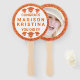 Bringen Sie diese lustigen Orange und Weiß Handfächer zur Abschluss Zeremonie, damit Sie Ihre Glückwünsche an den Abitur schicken können, wenn sie stolz auf ihr Diplom sind. Jeder Abschluss-Handventilator verfügt über eine Seite mit einem Imitat orangefarbenen Glitzer-Rahmen, ein Trio von passender Kappe und Tassel entwirft oben und unten mit GLÜCKWÜNSCHEN und DIR DID IT! und den Namen Ihres Absolventen in der Mitte in einem größeren orangefarbenen Schriftart auf dem weißen Hintergrund. Diese individuellen runden Fächer kehren zu einem passenden Imitat in Orangenblende um und das Foto Ihres Absolventen in der Mitte. Fügen Sie dem Abschluss ein wenig Spaß bei diesen lustigen personalisiert-orange-weiße Bilderhandfans hinzu.