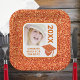 Erstellen Sie Ihre eigenen personalisierten Graduierungsparty-Teller mit einem Imitat Orange-Glitzer-Kappe und Tassel-Design zusammen mit Ihrem Foto und benutzerdefinierten Text. Fügen Sie Ihr Foto, das mit abgerundeten Ecken erscheinen wird, um die abgerundeten Ecken dieser quadratischen Papierplatte mit einem Imitat orangen glitzernden Hintergrund nachzuahmen. Die Mitte der Papiertafel ist weiß, der den fett orangefarbenen Pop lasse - das Abschluss-Jahr rechts in Großbuchstaben und eine personalisierte Textnachricht unter dem Foto für ein absolut einzigartiges Tischdekor. Von der Dekoration des Party bis hin zur richtigen Speisekarte will du deine Abschlussfeier perfekt zu machen und diese quadratischen Teller in Imitat Orangen Glitzer fügen eine besondere Touch zu deiner Feier des Abschlusses der High School oder Uni. Glückwünsche grad, du hast es getan!