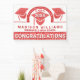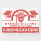 Dieses leicht zu personalisierende Banner der Graduierungsparty zeichnet sich durch ein Imitat-Rot-Glitzer-Cap und ein Tassel-Design sowie fünf Text-Vorlagen für ein freundliches Party-Dekor aus. Dieses rot-weiße GRATULATIONS-Banner hat Platz für den Abschluss Jahr auf der größten Mortarboard, den Namen Ihres Absolventen, die High School und Gratulationen in fett weiß Schrift mit einem dunkelroten Schlagschatten auf einem Imitat Glitzer Rand unten. Vom Halbkreisdesign oben, flankiert von zwei passenden Imitate Glitzer Graduierungskappen in Rot bis hin zu Ihrem individuellen Text, wird dieses personalisierte Graduiertenfest Banner die Dekorationsblende für Ihre einzigartige Feier aufwerten.