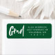 Dieses einfache Rücksendelabel wurde für die Abstimmung mit der Lea Delaveris Design Abschluss Celebration Collection konzipiert und bietet neben Ihrem Namen und Ihrer Anschrift einen modernen, handgeschriebenen "grad". Die Standard-Hintergrundfarbe ist smaragdgrün, kann aber durch Klicken auf "Anpassen" geändert werden.