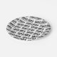 Abschluss Papier Teller mit dem Text "GRAD" und Ihr Jahr in einer Uni Sport-Schriftart mit dem Graduiertennamen unten. Schwarzer Text auf weißem oder benutzerdefiniertem Hintergrund.