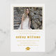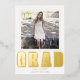 Die Einführung einer zeitgenössischen und raffinierten Ankündigung für den Abschluss der Klasse 2025, mit einer Touch der Opulenz durch den Einsatz von modernen und eleganten Goldfolie. Dieses exquisite Design zeigt die prominente "GRAD"-Inschrift in schimmernder Goldfolie, die durch das fesselnde Foto-Set des Absolventen vor einem unberührten, weißen Hintergrund wunderschön ergänzt wird. Ein zusätzliches Foto schenkt der Ankündigung den Rücken, bietet aber auch eine Plattform, um alle wesentlichen Details dieser bedeutsamen Abschluss-Feier aufzunehmen.