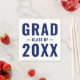 Grad Klasse von 2024 dunkelmarineblau und weiß moderne Typografie Graduation Party Papier Napkins. Vollständig anpassbarer dunkelmarineblau blauer Text auf weißem Hintergrund. Erhältlich in vielen Farben und Stilvarianten. Alle Farben können bearbeitet werden. Ideal für Kindergarten, Grundschule, Mittelschule, Oberschule und Uni. Karo der Erholung der Kollektion für zusätzliche, aufeinander abgestimmte und koordinierende Abschluss-Geschenke, Gefälligkeiten, Party und Dekorationselemente.