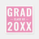 Grad Klasse von 2023 rosa und weiß moderne Typografie Graduation Party Papier Napkins. Vollständig anpassbarer weißer Text auf rosa Hintergrund. Erhältlich in vielen Farben und Stilvarianten. Alle Farben können bearbeitet werden. Ideal für Kindergarten, Grundschule, Mittelschule, Oberschule und Uni. Karo der Erholung der Kollektion für zusätzliche, aufeinander abgestimmte und koordinierende Abschluss-Geschenke, Gefälligkeiten, Party und Dekorationselemente.