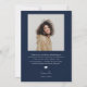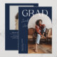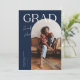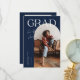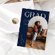 Stilvolle und moderne Abschluss-Ankündigungskarte zum Versenden an Familie und Freunde. Es gibt einen marineblauen Bogenrahmen um Ihr Foto. Es steht oben "GRAD" mit deinem Namen, der in einem lässigen Skript-Schriftart geschrieben ist.