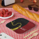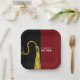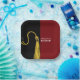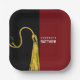 Creative Graduation Party Teller mit klassischem Schwarz-Gold-Graduierungssockel auf einem Maronhintergrund. Bearbeiten Sie Text, um seinen Namen hinzuzufügen.