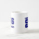 Die Keramik Kaffee Tasse wird in Blau und Weiß dargestellt. Passen Sie dieses Objekt an oder kaufen Sie es wie gezeigt. Lizenzierte Printwerbung