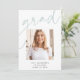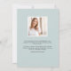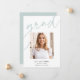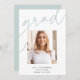 Passen Sie diese schicke Ankündigung des Abschlusses mit einem quadratischen Foto auf dem Wort "GRAD" in sanft blass aqua Buchstaben, zusammen mit Ihrem Namen, Schule und Abschluss Jahr. Fügen Sie dem Hintergrund ein zusätzliches Foto und eine persönliche Nachricht hinzu.