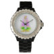 Schwarze Damen Email Strassuhr