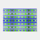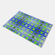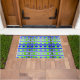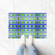 Diese Tür hat ein geometrisches Design von Linien in den Farbtönen Blau und Grün gewebt, um eine karierte.