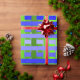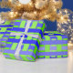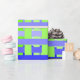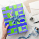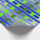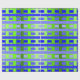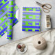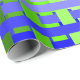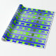 Dieses Verpackungspapier hat ein geometrisches Design von Linien in den Farbtönen Blau und Grün gewoben, um eine karierte.