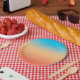 Gradient ombre Korallenblüte Beige Blau weiche ver Pappteller