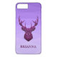 Moderner lila und lavendergeometrischer Hintergrund und lila polygonaler Hirsch. Optionales Monogramm