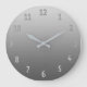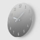 Ein ziemlich einfaches und ruhiges Design der Wanduhr, alle basierend auf einer Farbe: Grau. Die Ziffern sind normale Zahlen mit winziger schwarzer Kontur. Die Ziffern und der Hintergrund sind gegenteilig, wodurch die Ziffern cool hervorgehoben werden. Suchen Sie nach anderen Farbvarianten wie aquamarin, rosa, gold, blau und grau.