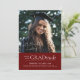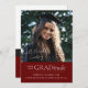 Diese Ankündigung des Abschlusses enthält ein großes Foto und eine kluge Dankesbotschaft. Die Ankündigung lautet "Mit GRADitude gefüllt" und beinhaltet ein Dankeschön und "Signatur" in einem handgeschriebenen Schriftart. Der dunkelrote Hintergrund kann an die Schulfarben angepasst werden. Die Rückseite hat ein zusätzliches Foto und Platz für eine Nachricht oder weitere Details. Diese Ankündigung des Abschlusses funktioniert besonders gut für diejenigen, die fortgeschrittene Abschlüsse abschließen, um ihre Wertschätzung für die Unterstützung zu teilen, die sie im Laufe ihres Studiums erhalten haben.