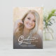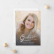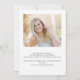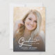 Einfache moderne Schrift mit zwei Fotos Abschluss Ankündigung. Mit einem Foto in voller Größe auf der Vorderseite mit weißem Texteüberlagerungen und einem Foto auf der Rückseite mit optionalen Details.