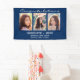 Dieses Abschluss-Banner zum Feiern Ihres Absolventen bietet eine Foto-Collage von drei Fotos auf einem königsblauen Hintergrund. Oben in der weißen Schrift liest es "Herzlichen Glückwunsch" und unter "Graduate 2021" mit Ihrem Namen und Schule zu personalisieren. Entworfen von der Künstlerin Susan Coffey