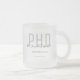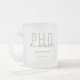 Eine PhD-Abschluss-Tasse, die den Namen des Absolventen, das Studiengebiet und das Datum des Abschlusses enthält. Die Tasse enthält den Namen in einem Schriftart mit Schriftzeichen und einem Schwarz-Grauen Design. Es ist großartig wie ein Sake oder ein Gastgeschenk. Fügen Sie einfach die Informationen des Absolventen hinzu, fügen Sie diese Tasse in Ihren Warenkorb, und herzlichen Glückwunsch zu diesem wichtigen Meilenstein! Graduate Black Gray Date Name Degree PhD Mattiert Glass Coffee Tasse Holidayday Design | ©Melissa Patton