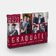 Eleganter Abschluss halten schwarzes Foto für den grad mit einer 5-Bild-Collage und "Graduate" geschrieben unten in großen weißen modernen Typografie. Fügen Sie das Unterrichtsjahr, den Namen und die Schule oder die Universität in der einfachen weißen Typografie hinzu.