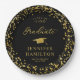 Graduate Elegante Gold Confetti auf dem Schwarzen Pappteller