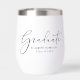 Ein eleganter Thermalwäscher zum Toast und Feiern des Absolventen mit "Graduate" in einem schicken modernen Drehbuch und der Name und Klasse Jahr des Absolventen in der einfachen modernen Typografie.