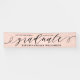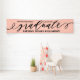 Feiern Sie den Absolventen mit diesem stilvollen Abschluss-Fest-Banner. Das Banner hat einen rosa Hintergrund mit "Graduate", der in der stylischen weißen Schriftzeichen-Kalligrafie angezeigt wird. Stellen Sie sich mit dem Namen, der Schule und dem Abschluss Ihres Absolventen ein. Hintergrundfarbe, Schriftart und Schriftart können in Anzug Ihrer Vorliebe geändert werden.
