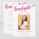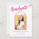 Feiern Sie den Abschluss Ihrer Tochter in der Schule, Uni oder an der Universität mit dieser spielerischen und lebendigen, schwarz-rosa Foto Boardkarte. Diese Karte ist stilvoll und verfügt über eine kalkrote Schriftzeichen-Kalligraphie mit kühlem schwarzem Hintergrund, die mit einem lustigen, eleganten rosa Bogen abgerundet ist. Die Vorderseite zeigt das Wort "Graduate" in atemberaubendem, rosa Drehbuch, perfekt ergänzt durch ihren Namen und Abschluss Details in modernen rosa Typografie. Die Rückseite bietet Platz für zusätzliche Informationen zur Koordination von scharf rosa Text. Mit einer einfach zu handhabenden Fotovorlage können Sie diese Karte mit einem hochgeschätzten Foto Ihres Absolventen personalisieren, was sie einzigartig macht. Diese einmalige Karte wurde von der Künstlerin Catherine Sweetman entworfen und ist der perfekte Weg, um ihre Errungenschaft zu markieren und die Freude mit Freunden und Familie zu teilen!