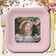 Fügen Sie Ihr Lieblings-Foto zu diesen Abschluss quadratisch rosa Party Papier-Tellern mit Ihrem Namen, Klassenjahr und das Wort graduieren in chic Schriften auf einem blauen Hintergrund. Weitere Designs und Farben in unserer Kollektion.