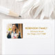 Personalisierte Adressetikett-Designvorlage mit einem beliebten Foto Ihres Absolventen mit modernem Goldskripttypografie-Rücksendeadresse-Text auf weißem Hintergrund. Foto und Text lassen sich leicht anpassen. Herzlichen Glückwunsch!