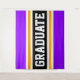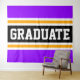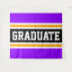 Dieses sportliche, sportliche Design zeichnet sich durch fett gedruckten GRADUATE-Text in einem farbig hervorgehobenen, breiten schwarzen Streifen mit doppelweißen und gelben Rennstreifen gegen lila äußere Streifen aus. Der Text in diesem Design kann personalisiert sein.