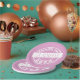 Diese moderne rosafarbene Papierplatte weist eine weiße "Klasse" in einem Kreis auf, der wie eine Briefmarke aussieht. Geben Sie einfach den Namen und das Abschluss des Absolventen ein. In unserem Geschäft stehen Produkte zur Koordination zur Verfügung.