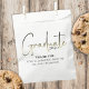 Dieses Design umfasst einen Abschluss Grade Gastgeschenk Tasche, Graduierungsmörtel Mörtel Pappe, High School oder Uni Senior, individuelle personalisierte Namensklasse von, ein trendiger Stil Kalligraphie Skript-Schriftart, Abschluss grad Party Vorräte, vereinfachend zeitgenössisches Design, Leckerei Cookie Bar Dessert Geschenk, Hundetasche zum Nachtisch, Graduierparty Leckerei Tasche.