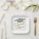 Dieses Design verfügt über ein modernes, einfaches Party, mit einem Graduiertenmörtel aus Mörtel für High School- oder Uni-Senioren, mit einer individuellen personalisierten Namensklasse für Ihr Jahr, einem trendigen, stilvollen Kalligraphie-Script-Schriftart, einem Grade Party Papier Tafelgeschirr, Abschluss grad Party Vorräte, ein einfaches minimalistisches Goldkonfetti-Party, ein modernes zeitgenössisches Design, modernes Design, ein Abende Dessert für einen grad-Abschluss-Dessert. Platte