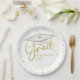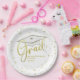 Dieses Design verfügt über ein modernes, einfaches Party, mit einem Graduiertenmörtel aus Mörtel für High School- oder Uni-Senioren, mit einer individuellen personalisierten Namensklasse für Ihr Jahr, einem trendigen, stilvollen Kalligraphie-Script-Schriftart, einem Grade Party Papier Tafelgeschirr, Abschluss grad Party Vorräte, ein einfaches minimalistisches Goldkonfetti-Party, ein modernes zeitgenössisches Design, modernes Design, ein Abende Dessert für einen grad-Abschluss-Dessert. Platte