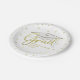 Dieses Design verfügt über ein modernes, einfaches Party, mit einem Graduiertenmörtel aus Mörtel für High School- oder Uni-Senioren, mit einer individuellen personalisierten Namensklasse für Ihr Jahr, einem trendigen, stilvollen Kalligraphie-Script-Schriftart, einem Grade Party Papier Tafelgeschirr, Abschluss grad Party Vorräte, ein einfaches minimalistisches Goldkonfetti-Party, ein modernes zeitgenössisches Design, modernes Design, ein Abende Dessert für einen grad-Abschluss-Dessert. Platte