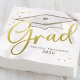 Dieses Design verfügt über ein modernes, einfaches Party, mit einem Graduiertenmörtel, für High School oder Uni Senior, mit individueller personalisierter Namensklasse, einem trendigen Kalligraphie-Script-Schriftart, einem Grade Party Papier Cocktail Serviette, Abschluss grad Party Vorräte, ein einfaches minimalistisches Goldkonfetti-Party, ein einfaches modernes Design, ein grad Abschluss Dessert Dessert Serviette