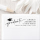 Rücksendeadressen-Aufkleber mit einem Graduierungspapier und dem Text "Graduate" in handgeschriebenem Schriftart. Rechts befinden sich Vorlagenfelder für Ihren Namen und Ihre Adresse.