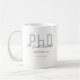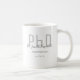 Eine Doktortitel-Tasse, die den Namen des Absolventen, das Studiengebiet und das Datum des Abschlusses enthält. Die Tasse enthält den Namen in einem Schriftart mit Handschriftenschrift und ein grau-schwarzes Design. Es ist großartig wie ein Sake oder ein Gastgeschenk. Fügen Sie einfach die Informationen des Absolventen hinzu, fügen Sie diese Tasse in Ihren Warenkorb, und herzlichen Glückwunsch zu diesem wichtigen Meilenstein! Graduate Gray Black Name PhD Coffee Tasse Holidayday Design | ©Melissa Patton - Designer
