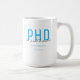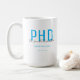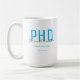 Eine große Tasse für den Doktortitel, die den Namen, das Studiengebiet und das Datum des Abschlusses des Absolventen enthält. Die Tasse enthält den Namen in einem Schriftart mit Handschrift und einem Blau- und Schwarz-Design. Es ist großartig wie ein Sake oder ein Gastgeschenk. Fügen Sie einfach die Informationen des Absolventen hinzu, fügen Sie diese Tasse in Ihren Warenkorb, und herzlichen Glückwunsch zu diesem wichtigen Meilenstein! Graduate Keepake Blue Black Name PhD Large Coffee Tasse Holidayday Design | ©Melissa Patton - Designer