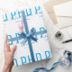 Graduate Keepake White Blue Name Grad PhD Geschenkpapier