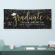 Elegantes und glamouröses Abschluss-Banner-Zeichen zelebriert Ihren Grad im Stil! Das Design verfügt über einen Graduiertendeckel, einen "Graduate" in modernen Imitaten, Goldfolienskripten und einen modernen, benutzerdefinierten Text, der mit dem Namen, dem Unterrichtsjahr und der Schule personalisiert werden kann. Enthält eine Grenze von glitzernden silber-weißen Konfetti. Die schwarze Hintergrundfarbe kann geändert werden.