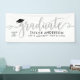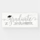 Elegantes und glamouröses Abschluss-Banner-Zeichen zelebriert Ihren Grad im Stil! Das Design verfügt über einen Graduiertendeckel, einen "Graduate" in modernen Imitaten, Silber-Silber-Drehbuch und einen modernen, benutzerdefinierten Text, der mit dem Namen, dem Unterrichtsjahr und der Schule personalisiert werden kann. Weiße Hintergrundfarbe kann geändert werden.